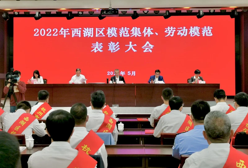 5月10日上午,西湖区举行2022年西湖区模范集体、劳动模范表彰会。区委书记高国飞、区委副书记陆志敏出席会议。会上表彰了2022年杭州市、西湖区模范集体和劳动模范。浙江中拓合控科技有限公司工程技术团队荣获“2022年西湖区模范集体”称号。