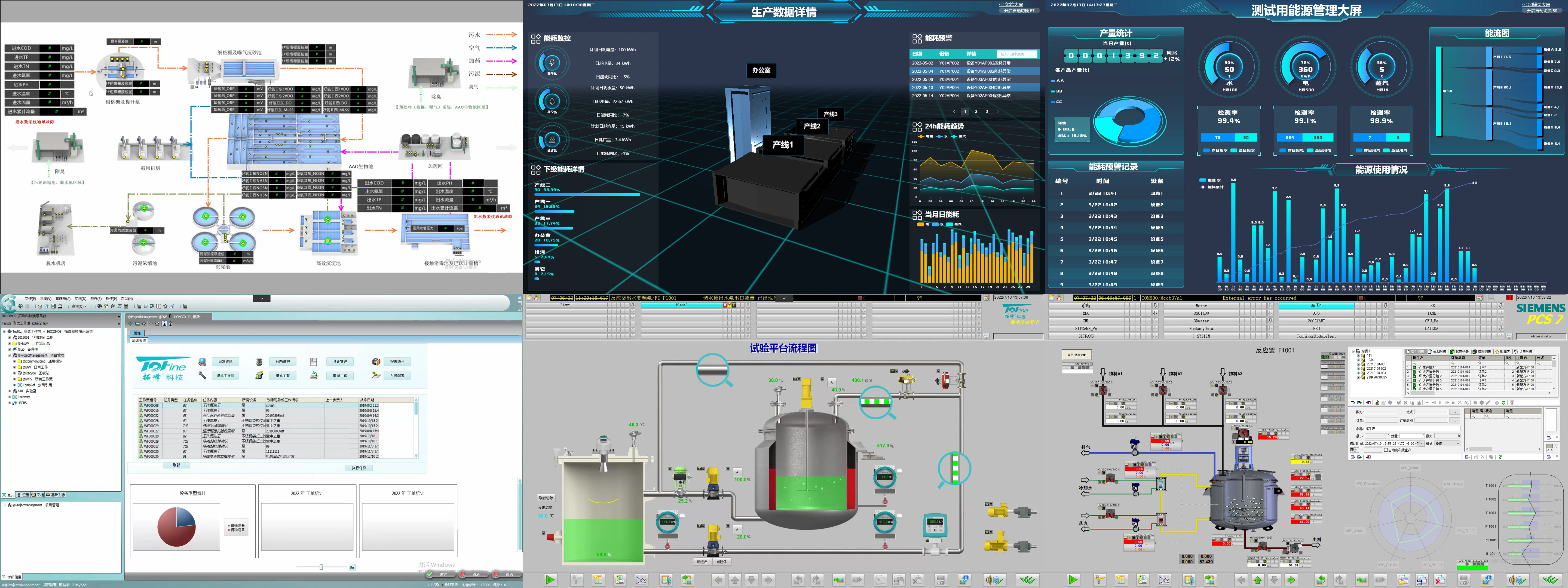 公司成功推进了西门子的BATCH软件的实施和PM-CONTROL的方案研究,并开发了基于华为云数字化平台的轻量级数字化看板和设备管理模块,掌握了基于水处理项目典型设备3D动态模型在SCADA中的应用技术。西门子中国公司于今年首次面向中国市场发布了西门子Xcelerator产品,公司成为首批全国签约合作的八家集成商之一。