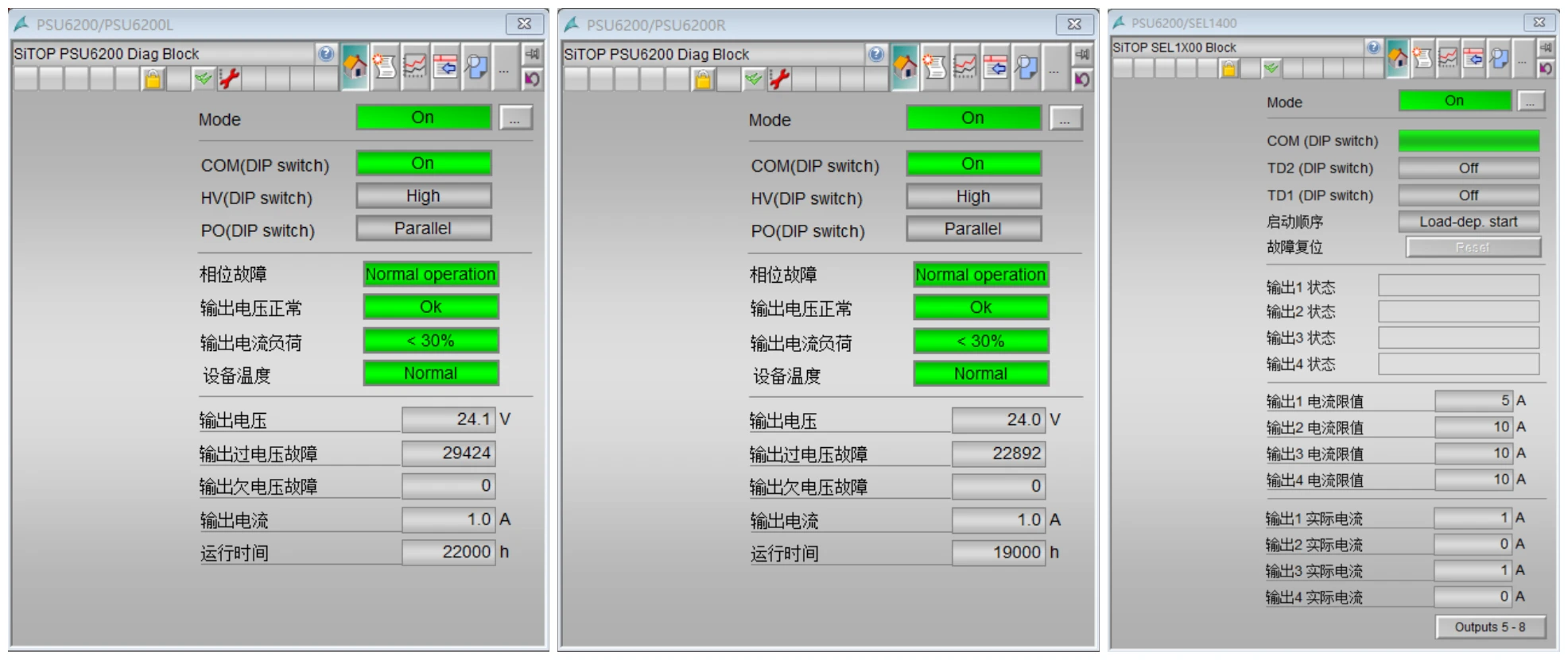 5、检查各开关电源是否工作正常,电源指示灯是否正常,采用智能电源,能直接在DCS操作员站上打开电源的诊断面板,及时发现各种潜在的供电问题(如下图)。
