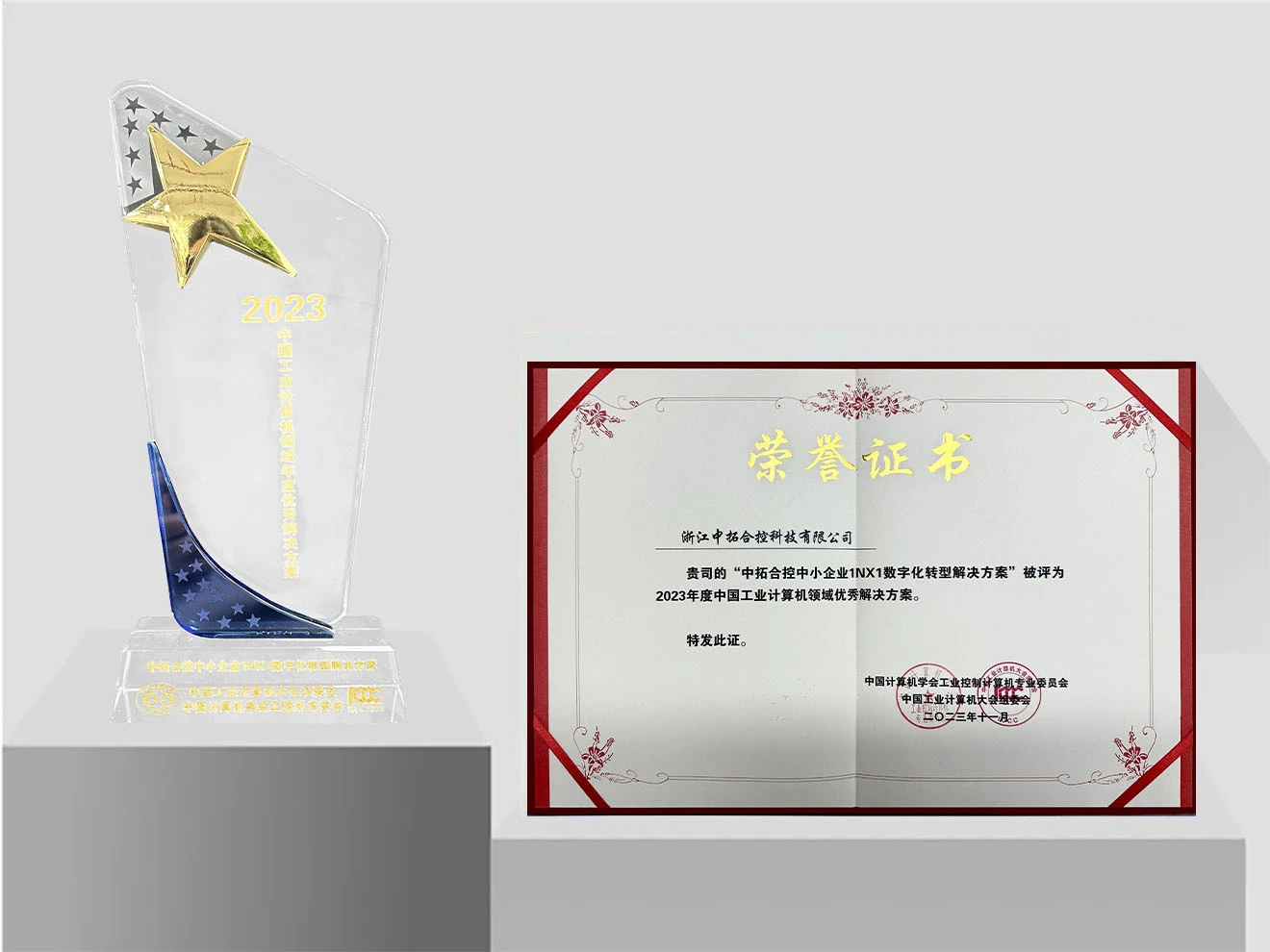 “中拓合控中小企业1NX1数字化转型解决方案”被评为2023年度中国工业计算机领域优秀解决方案。