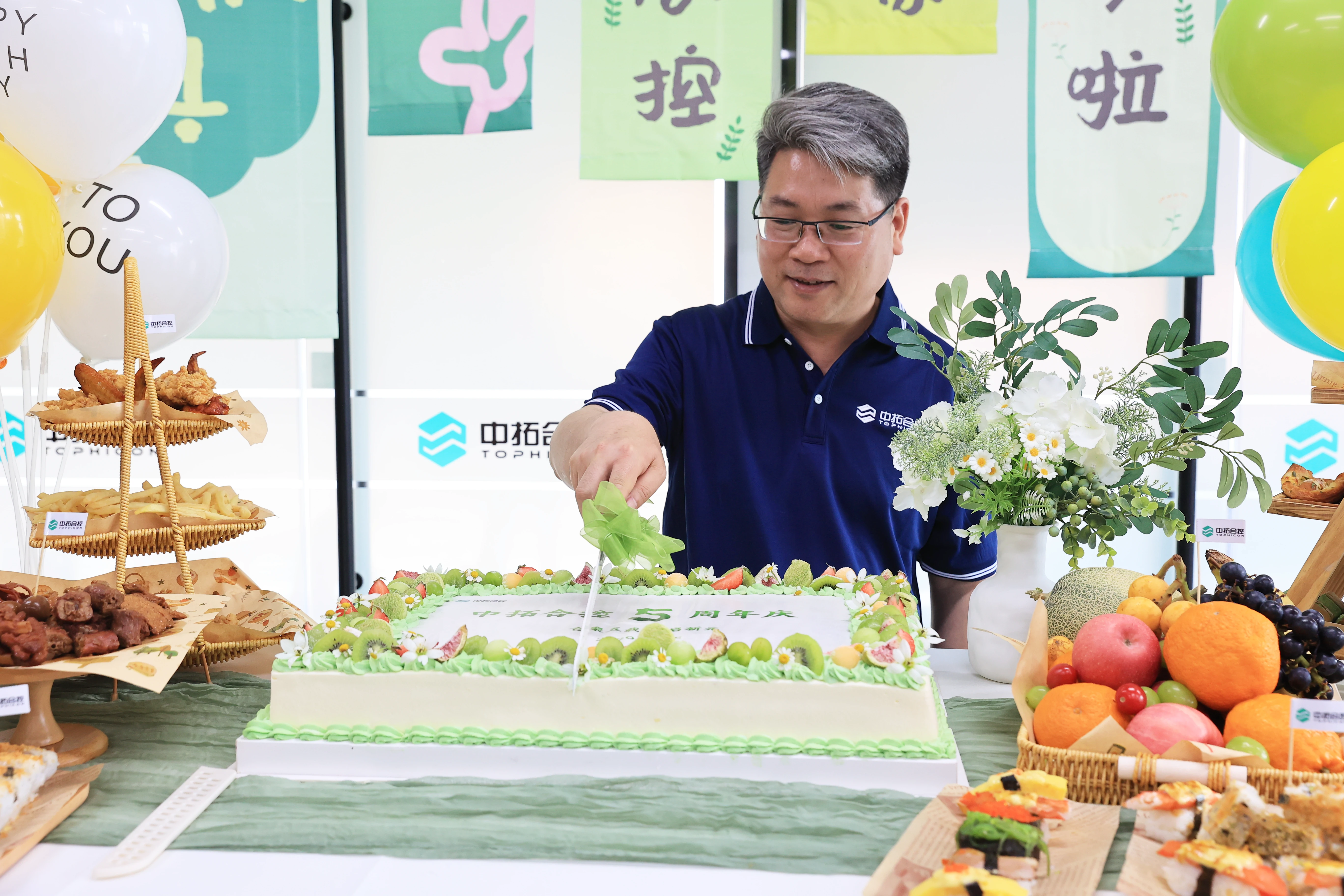 谁说庆典只能庄重?我们偏要“甜”满全场!中拓合控常务副总经理颜相龙先生为庆典蛋糕落下第一刀。这一刀切开的不只是糖霜包裹的"2020-2025"时间轴,更是对奋斗历程的加冕和对未来的期许。
