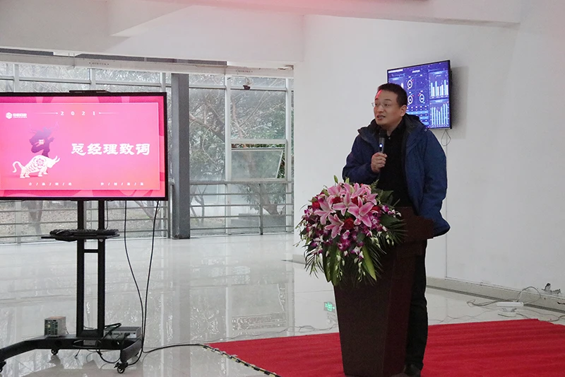 随后中拓合控总经理陈海东先生发表了致词,对2020年的全体成绩表示了肯定。指出数字化集成应用是我们的业务模式,也是核心竞争力。全公司上下团结一致,提升核心技术,研发中拓合控品牌的产品,做全国最优秀的数字化专家之一。