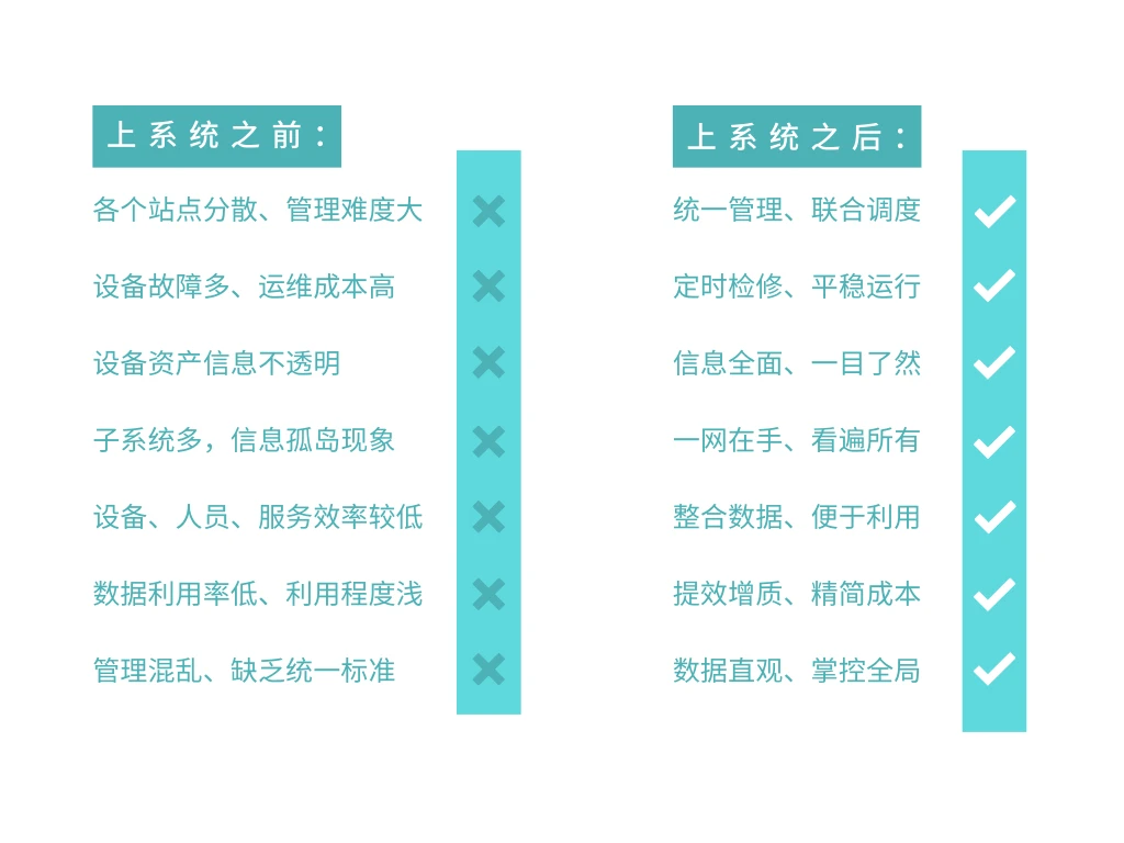 依靠前沿技术手段和思维方式从高效运维、集中管控、远程诊断、在线控制、设备管理、成本分析等多点切入,帮助水处理企业有效缓解运维人员管理难、设备维护保养难、运营管控技术难、运行成本费用高等问题。让水处理企业在提升自身运营管控水平的同时,能够在市场布局的关键阶段获得有利“身位”!