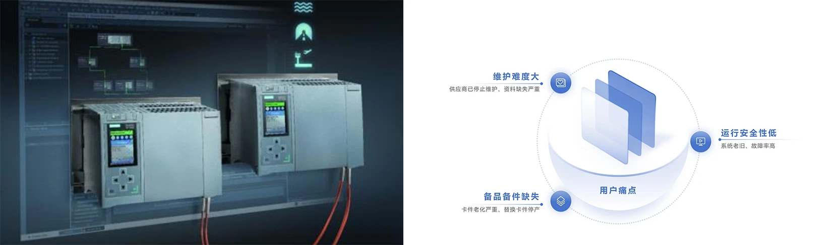 某水泥建材公司拥有一条2000t/d新型干法水泥生产线,并配套4.5MW余热发电装置,正在使用的控制系统品类繁多,包括中控的ECS-100 DCS控制系统,正泰中自的TDCS9200 DCS控制系统,施耐德TSX PSY2600 PLC控制系统等。生产装置投产已超过13年,存在标识不清、线号脱落、电缆长度受限、部分光缆断裂失效、资料残缺、系统带病运行等诸多问题。因使用年限长,备件停产,厂家售后技术服务跟不上等多方面原因,给控制系统维护工作带来诸多困难,甚至影响装置的正常生产。业主希望改造方案能兼顾长期可靠的备件服务、系统先进性和升级部署的灵活性。经招投标,中拓合控基于SIEMENS 1500R/H系统的升级改造方案得到了最终认可。