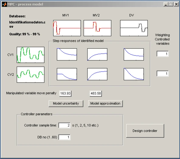 PCS 7支持的可扩展MPC功能,最多支持10 x 10的输入和输出,模块基于相关历史数据,根据性能和鲁棒性计算出的建议参数,输出模型近似的一阶+滞后时间传递函数,并调整识别模型,工程师可以对比和判断模型识别度,通过阶跃响应预判模型的响应特性,优化调整参数以获得理想的对象模型。